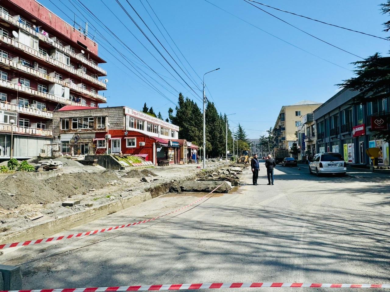 სამუშაობი მიმდინარეობს ძველი სამტრედიის ქუჩაზე.