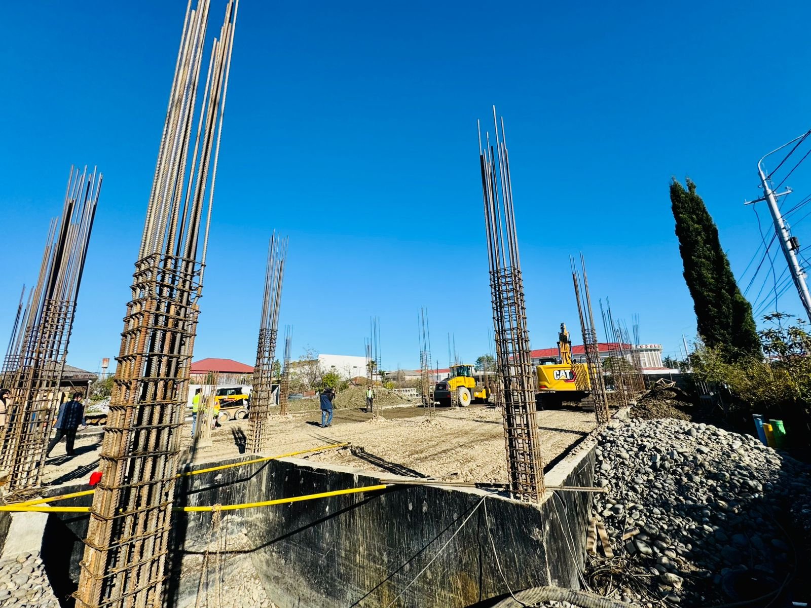 სკოლის მშენებლობის პროცესი მუნიციპალიტეტის მერმა, დავით ბახტაძემ, საგანმანათლებლო რესურსცენტრის უფროსთან, თინათინ ხარძიანთან და ადგულობრივი თვითმმართველობის სხვა წარმომადგენლებთან ერთად დაათვალიერა.