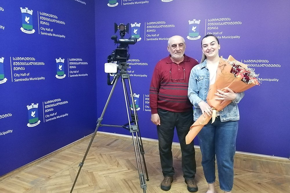 სამტრედიის მუნიციპალიტეტის მერმა, დავით ბახტაძემ, მოადგილესთან, გია მეიშვილთან და კულტურის სამსახურის უფროსთან, ნატალია მანჯგალაძესთან ერთად, მერი არაბიძეს, 18 - 29 მარტს მონტენეგროში მოპოვებული ევროპის ჩემპიონის ტიტული მიულოცა.