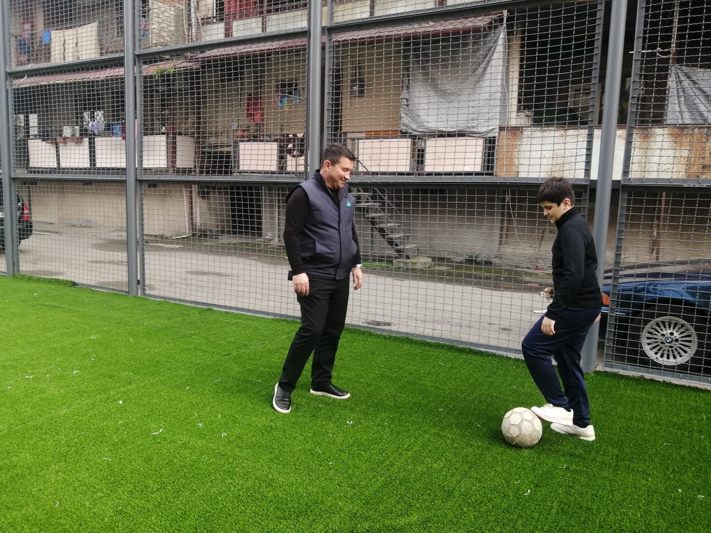 ლაშა თევზაძის ქუჩაზე N59, 60, 61 და 62 მრავალბინიანი საცხოვრებელი სახლების მიმდებარედ არსებული საფეხბურთო მოედნის სარეაბილიტაციო სამუშაოები დასრულების ეტაპზეა.