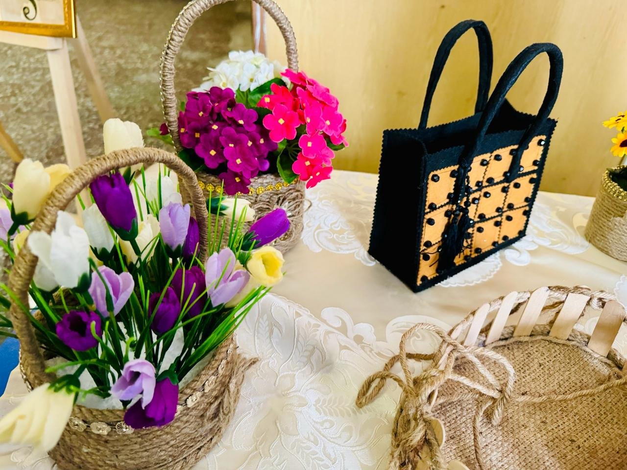 გამოფენაზე დამთვალიერებელს შესაძლებლობა ჰქონდა ფერწერული, თექაზე, თიხასა და სხვა მასალით შესრულებული ნამუშევრებს გაცნობოდა. დამთვალიერებელს სასურველი ნივთის ყიდვაც შეეძლო.