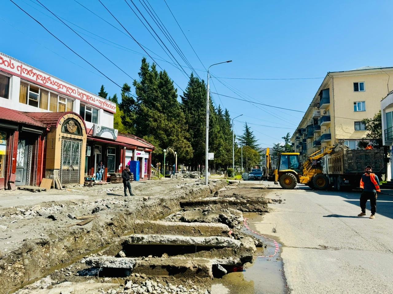 სამუშაობი მიმდინარეობს ძველი სამტრედიის ქუჩაზე.