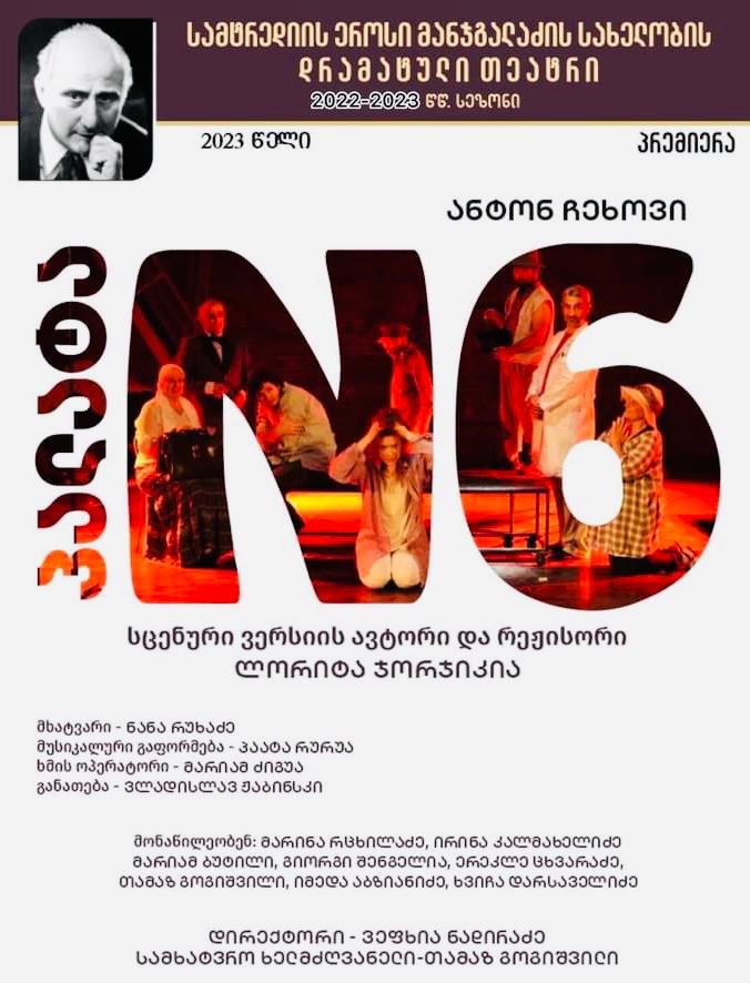 ანტონ ჩეხოვის ,,პალატა N6“–ის პრემიერითა და სრული ანშლაგით, სამტრედიის ეროსი მანჯგალაძის სახელობის დრამატულმა თეატრმა, 61–ე თეატრალური სეზონი დახურა. რეჟისორმა ლორიტა ჯორჯიკიამ მაყურებელი სამყაროს ქვეცნობიერს კიდევ ერთხელ დააკვირვა და განსხვავებული ადამიანების ბედზე დააფიქრა.