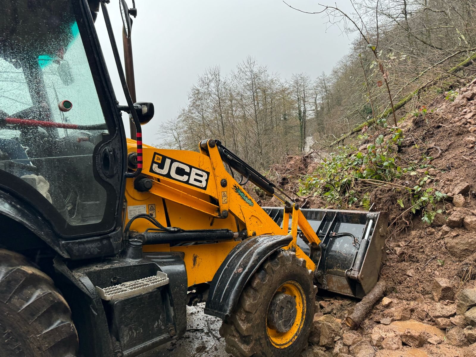 სამტრედიაში შესაბამისი ტექნიკის გამოყენებით მეწყერისაგან დაზიანებული ადგილების  გასუფთავების სამუშაოები მიმდინარეობს