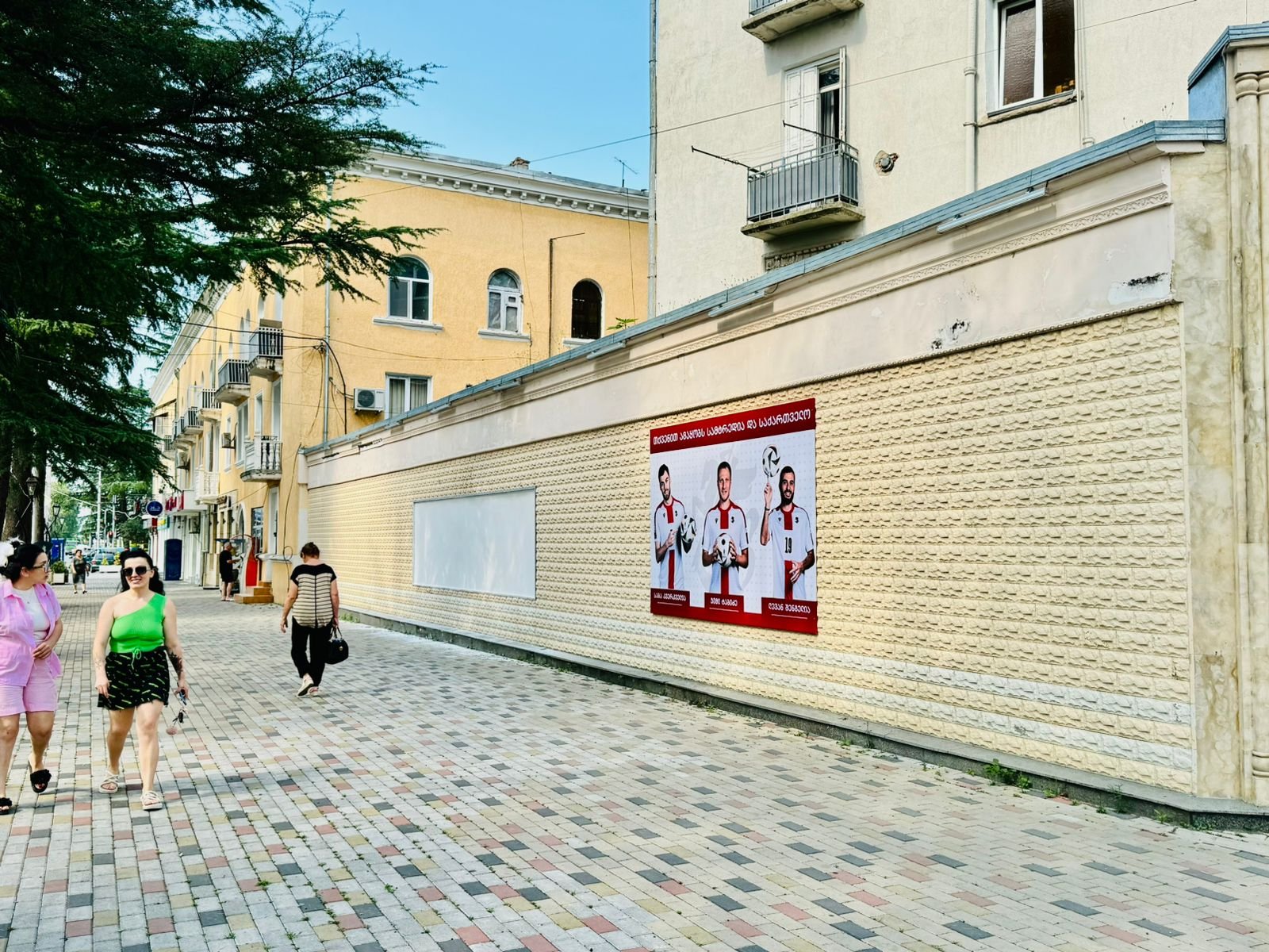 სამტრედიელი საამაყო ფეხბურთელების პოსტერი ქალაქის ცენტრში