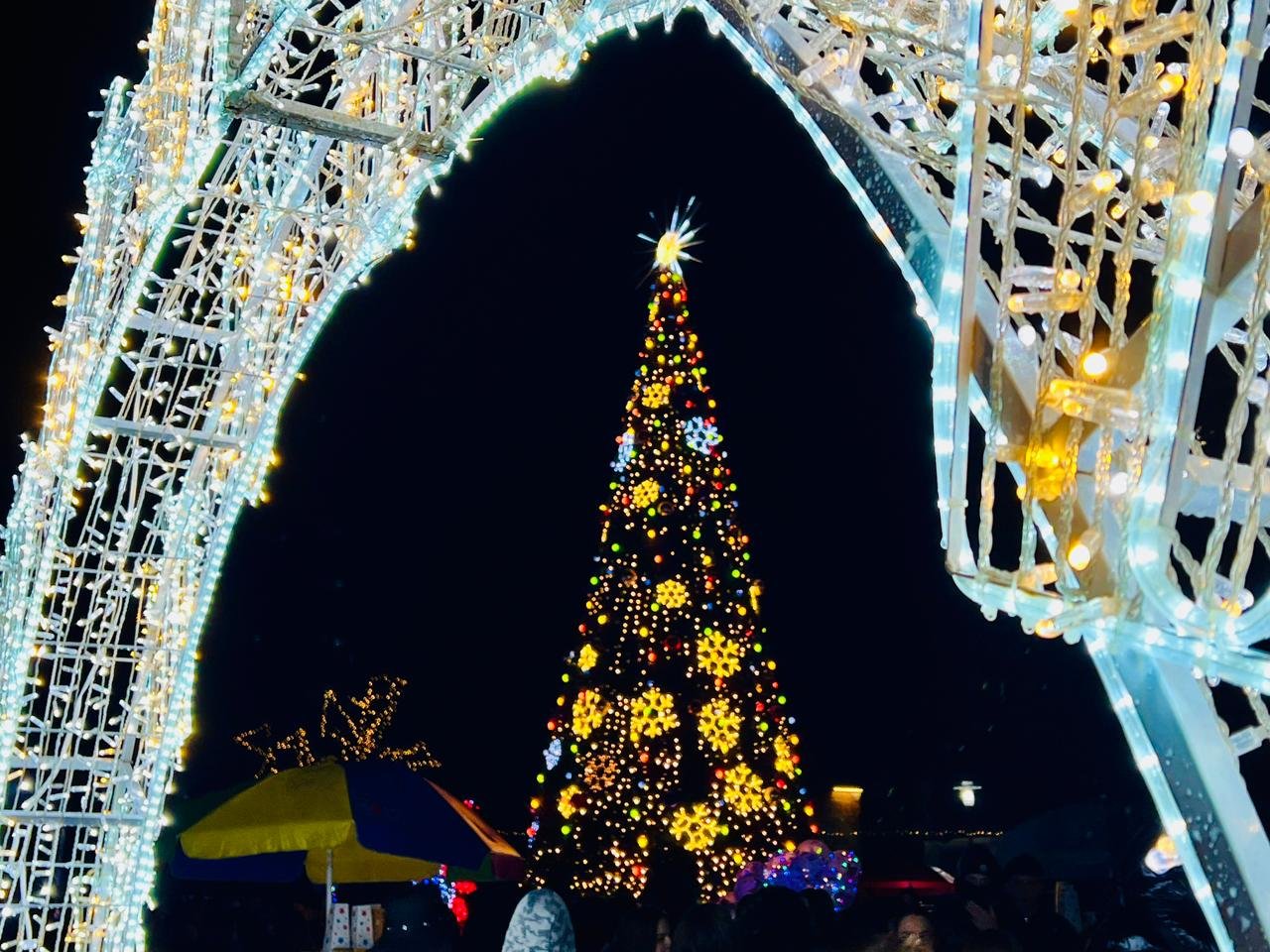 სამტრედიაში საზეიმოდ აინთო ქალაქის მთავარი საახალწლო ნაძვის ხე