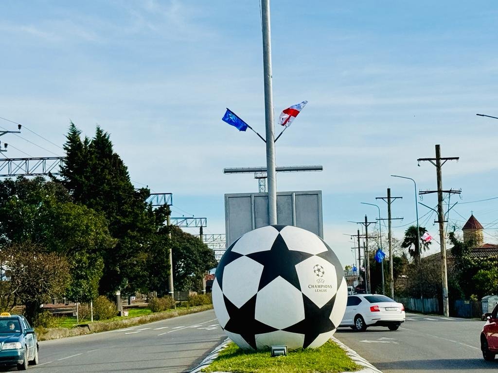 სამტრედიაში ევროკავშირის წევრობის კანდიდატის სტატუსის აღსანიშნად, საქართველოსა და ევროკავშირის დროშები გამოიფინა
