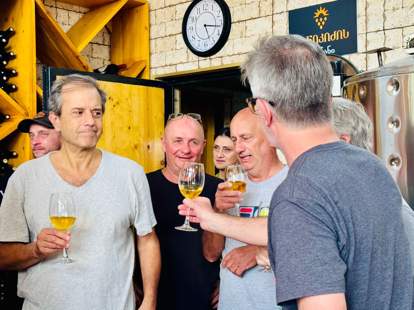 ვიზიტორებმა დაათვალირეს შესანიშნავად მოწყობილი ეზო, ყურძნის ხეივანი, მარანი, ღვინის დასაწური ადგილი. დააკვირდნენ ქართულ, ეროვნულ აქსესუარებს, რომელიც სწორედ მეღვინეობაში გამოიყენება.