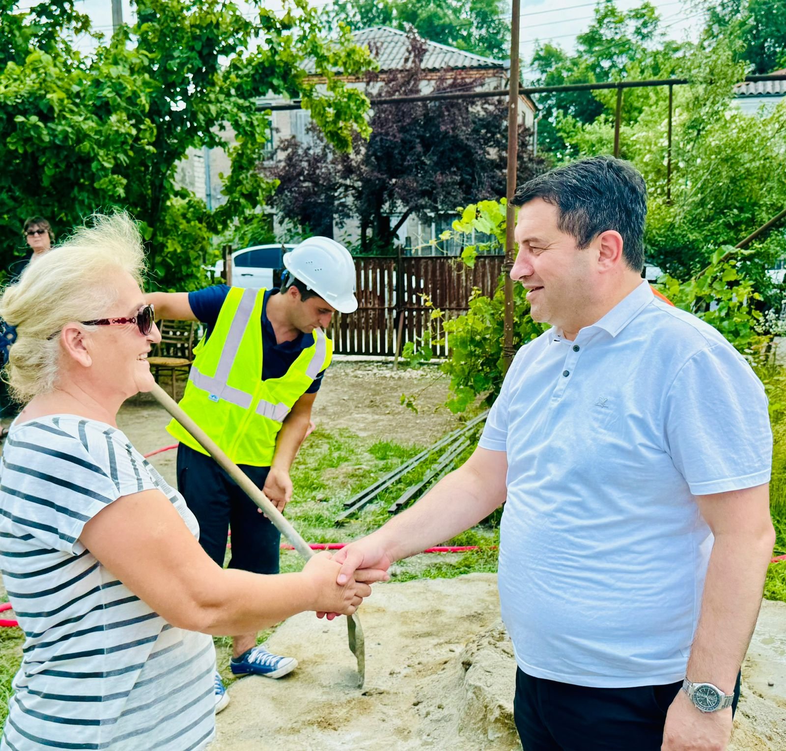 დღეს სახლების მშენებლობის პროცესს მუნიციპალიტეტის მერი, დავით ბახტაძე, მერიის სოციალური სამსახურის ხელმძღვანელთან ლევან ახობაძესთან და ზედამხედველობის სამსახურის უფროსთან ამირან თევდორაძესთან ერთად გაეცნო.