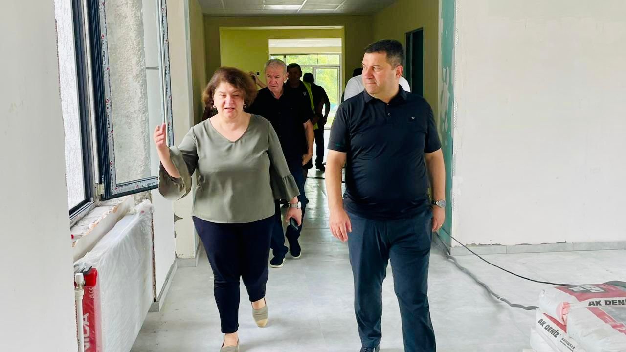 მიმდინარე სამუშაოები დაათვალიერა მუნიციპალიტეტის მერმა დავით ბახტაძემ და სამტრედიის საგანმანათლებლო რესურსცენტრის უფროსმა თინათინ ხარძიანმა.