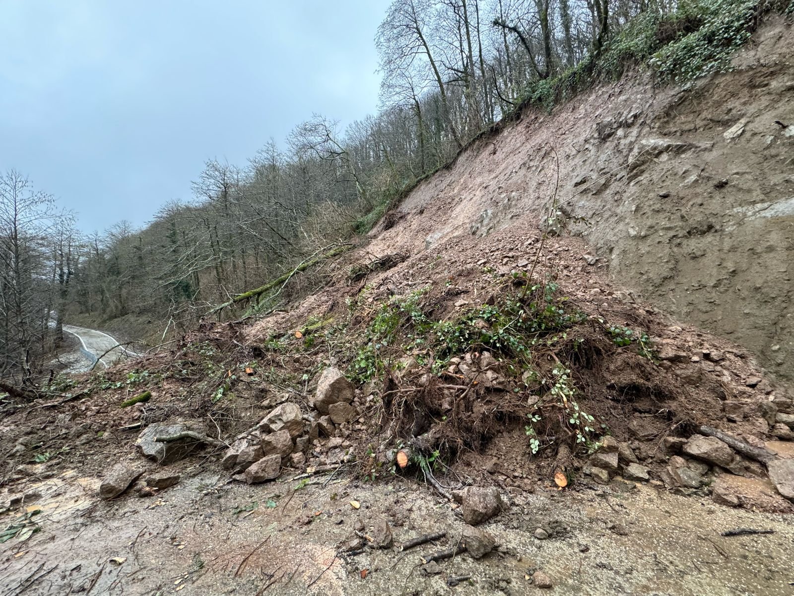 მეწყრული მოვლენებიდან გამომდინარე გზა მთლიანად ჩაიკეტა და გადაადგილება შეუძლებელია. ადგილზე კონტრაქტორი კომპანიის ტექნიკის გამოყენებით მიმდინარეობს მეწყერისაგან სავალი ნაწილის გასუფთავების სამუშაოები.
